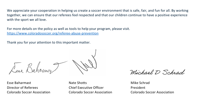 To Follow up on our Newsletter last week covering "Sideline Behavior Expectations". The two letters seen below go into detail what the Green Badge Program and Referee Abuse Prevention Policy cover. As a club we want to support our refs, many of them under the age of 18, like we support our players. Please read the following letters and understand what our role is as parents/coaches when interacting with our young referees.